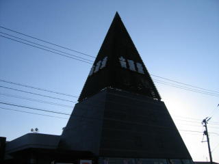 左側のとんがりの当り、モアイ?像の向かい側です。