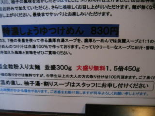 今日は「特厚つけ麺」830円にしようか、迷いました。