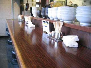 帰る時の写真です、道路側にテーブル席と小上がり席、今日はカウンター席の右端に座りました。