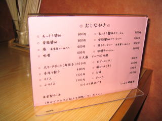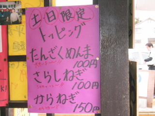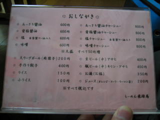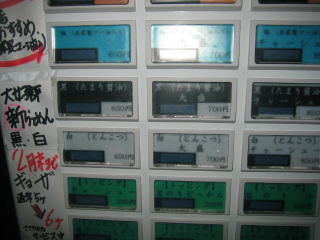白(とんこつ)のみ大盛(50円)と替玉(100円)が選べますので、食べてみてからのお腹具合と相談でき便利です。