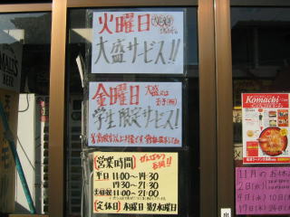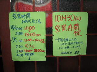 11月1日は11時〜15時、2日は定休日、3日は11時〜20時、4日より平常営業」と書いてありました。