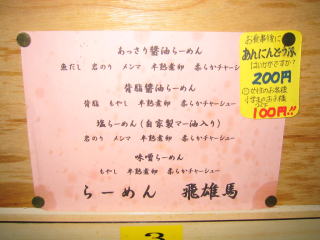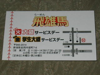 平成18年1月1日 長岡市の「ラーメン飛雄馬」さんにお邪魔しました。