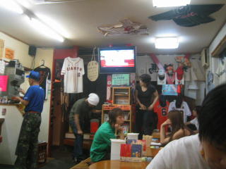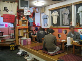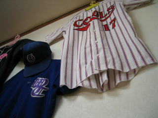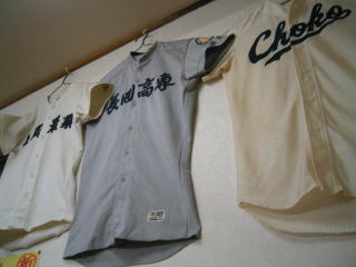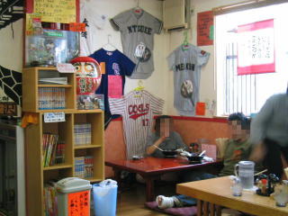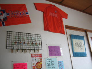 お店の名前にふさわしく、高校などの野球ユニホームが所狭しと掛けてありました。