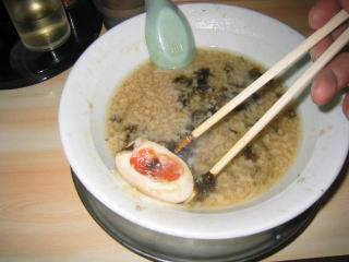 ラーメン屋さんのラーメンに生卵が入っているのは初めてかも知れません。