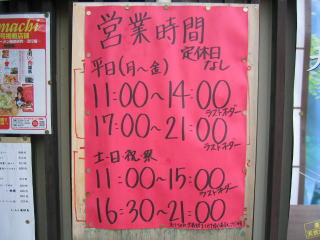 営業時間 平日11:00〜14:30 17:30〜21:30
