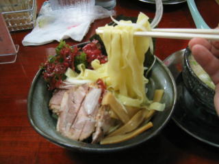 麺が太いのでスープが絡みにくいせいか、濃厚スープがいっそう良く絡み合う様な気がします。