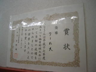 野球のユニホーム、準優勝の賞状もあり、ラーメンも野球も強いようです。