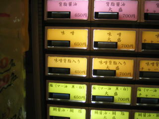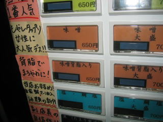 券売機で「背脂醤油大盛」800円と「白みそ大盛」800円を買います。