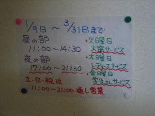 3月31日までの営業時間が掲示してあります。