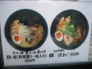 大山店限定の「焼きあじ醤油」650円が大盛サービスです。