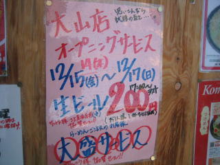 大山店では今日(12月17日)までオープニングサービス実施中です。