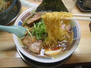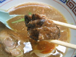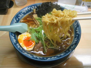 麺は中太中縮れ麺、あじの出汁と香りが甘じょっぱく効いています。