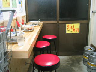 奥にもカウンター席と、きっと入口の券売機辺りが混むのでしょう、出口専用引き戸があります。