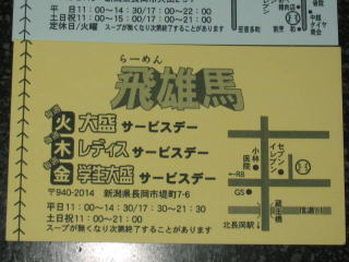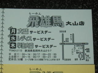平成18年12月 長岡市の「飛雄馬」さんに大山店がオープンしたとの情報を得て早速お邪魔しました。