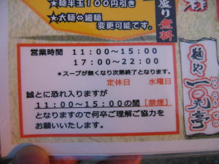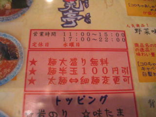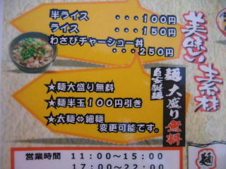 「麺大盛無料」、定休日は水曜日、中休みがあります。