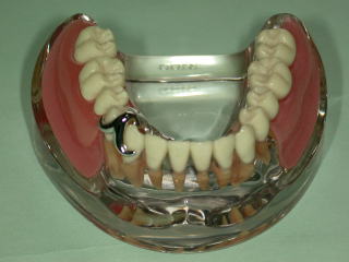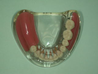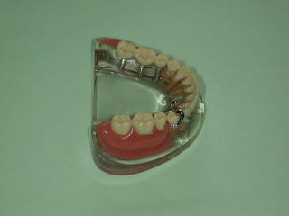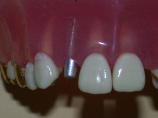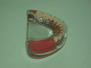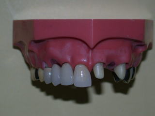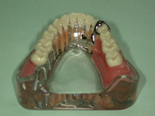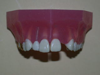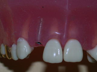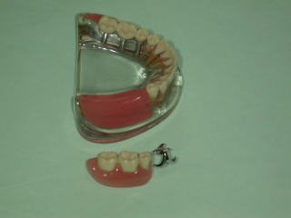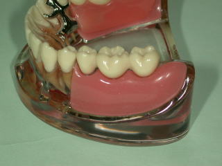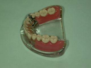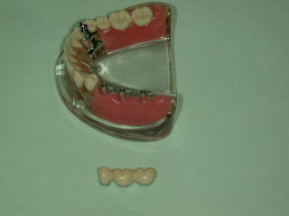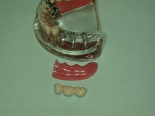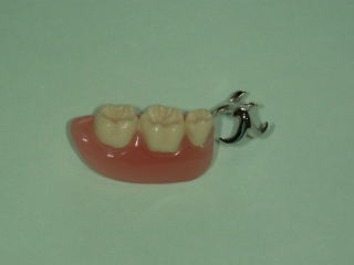 両脇の歯を削りたくない、あるいは何かの理由でブリッジの土台として使えない場合には1本の小さな入れ歯にすこともあります。