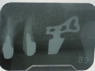 左上の入歯が見た目、噛合せとも満足できず、左上前歯部にインプラントを植立。