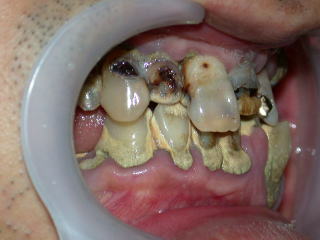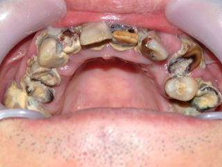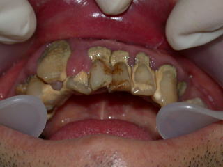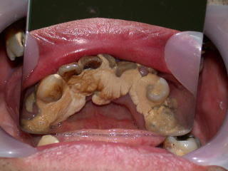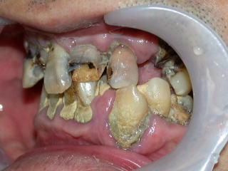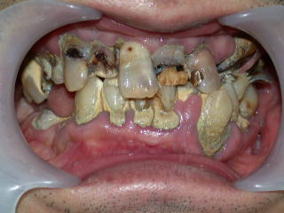 虫歯も歯石もひどく、歯肉は炎症を起こし、口腔内状態は劣悪でした。