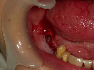 インプラント脚部の前後2針ずつ、合計4針縫合しました。