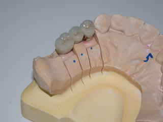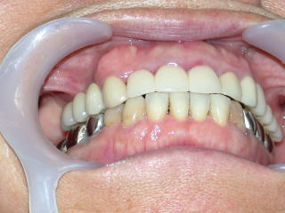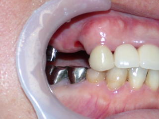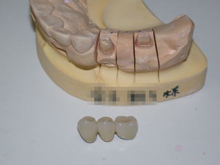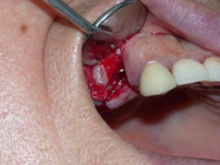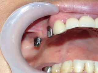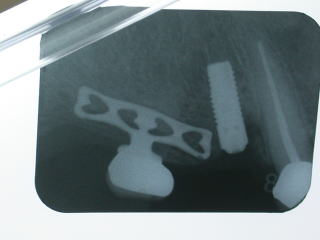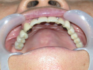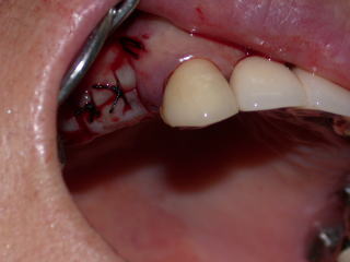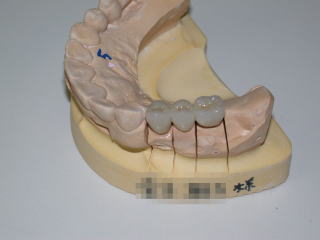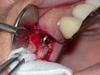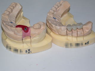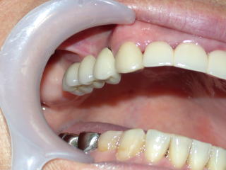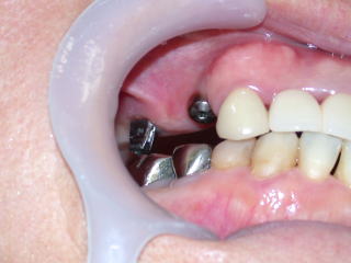本人が、義歯ではなく再度ブリッジを希望していましたので、抜歯後の右上4番にインプラント植立しブリッジを作製します。