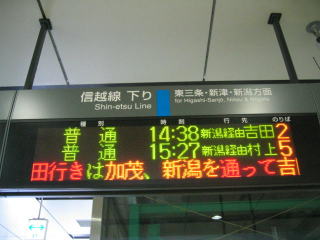 長岡駅で40分ほど時間をつぶし、14時38分の信越線経由、越後線吉田行きで出かけます。