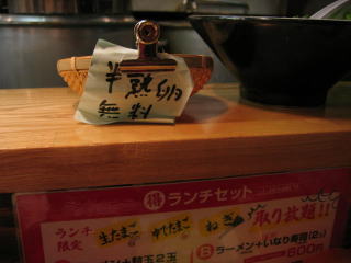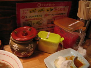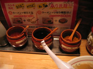 薬味の壷は一味唐辛子、マー油、カレー粉です。