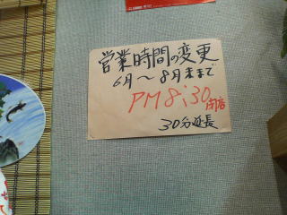 土曜日のみ午後8時半閉店と貼り紙がありました。