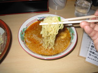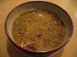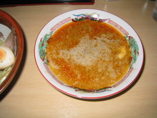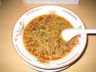 スープはピリカラです。