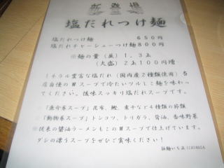 今回は「新登場 塩だれチャーシューつけ麺800円+大盛2玉100円」で900円です。