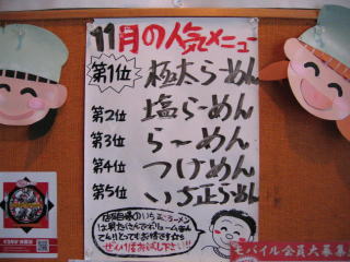 色々迷って、「11月の人気メニュー第1位」の「極太らーめん」の特盛400gの830円にします。