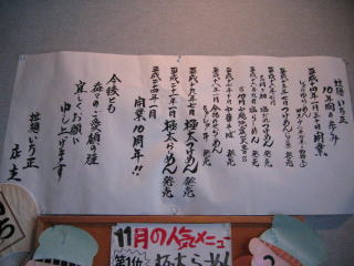 平成16年11月 長岡市の「拉麺 いち正」さんにお邪魔しました。