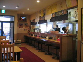 左手前にカウンター席と厨房です。