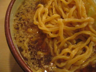 麺は黄色く透きとった縮れ麺です。