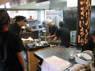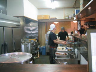 白タオルを巻いたご主人が一生懸命頑張ってラーメンを作っています。