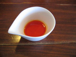 ちょっと遅れて店員さんが「自家製ラー油です、お好みでお使いください。」と小皿で持ってきました。