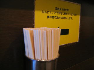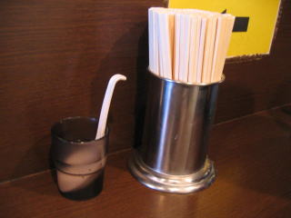 カウンター上は極めてシンプル、割箸のみです、お水とレンゲはセルフです。