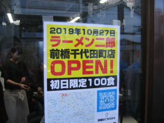 前橋にも「ラーメン二郎」さんがオープンしたようです。