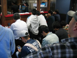日曜日の午後3時45分頃ですが、お客さんが7人ほど並んでいました。