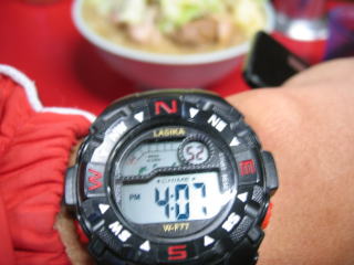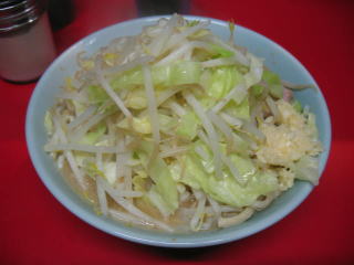 カウンター席に案内されました、そして午後4時7分、「ラーメン小の野菜、ニンニク」がきました。