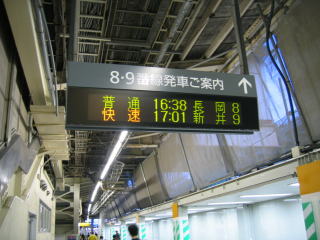 新潟駅16:38分の電車にも乗れますが、もう車内は混んでいて座れそうもないので、17:01分の快速で座って帰りました。