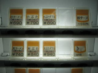 「粉チーズ」100円や「ネギ」100円、「汁なし」80円などの食券もあります。