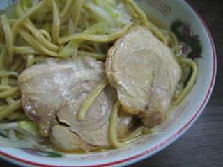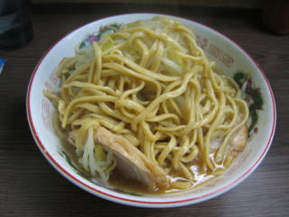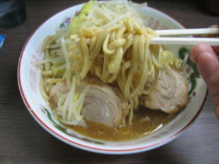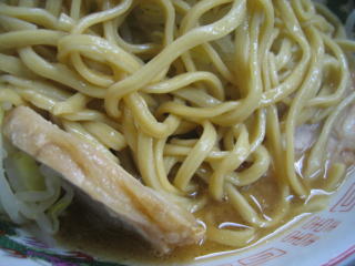麺は二郎さんに多い、特徴のあるフカフカの平打ち太麺です。