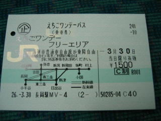 午後から「えちごワンデーパス」1.500円を使って新潟市へ向かいます。