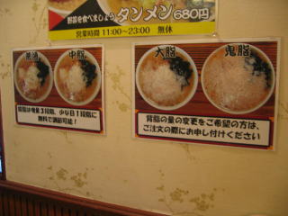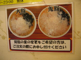 背脂の量は普通、中脂、大脂、鬼脂から選べます。