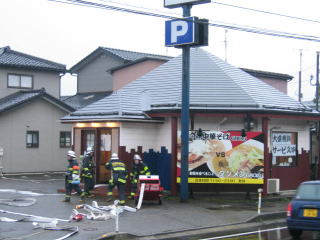 麺を半分も食べてはいませんが、非常事態発生、厨房で火の手が上がりました。