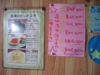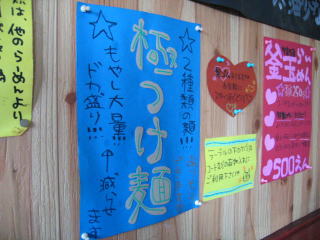 こちらは「トッピング」、「極つけ麺」の張り紙です。