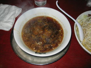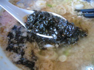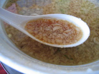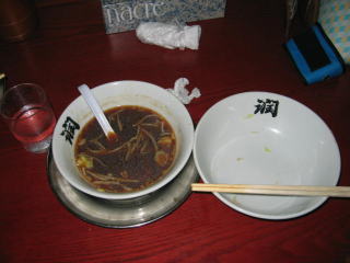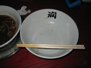 鬼油のスープをほとんど飲み干すのですが、この瀬戸物の蓮華、高級品なんでしょうが使いにくい。