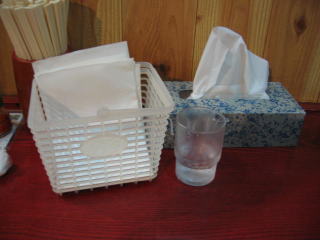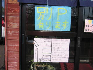 まず、入り口ガラス戸に「スーパーつちだ様のご好意により同店駐車場を使用できるようになった。」旨の張り紙がありました。