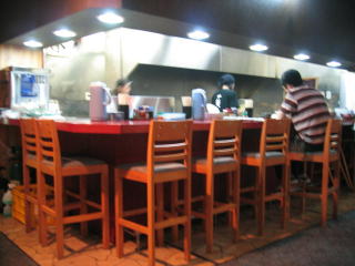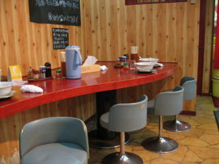 店内は右側にL字型カウンターと厨房、左側も壁に沿ってL字型にカウンター席があります。