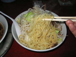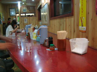 混んでいるのと、麺が太いせいか、ちょっと長めの待ち時間です。